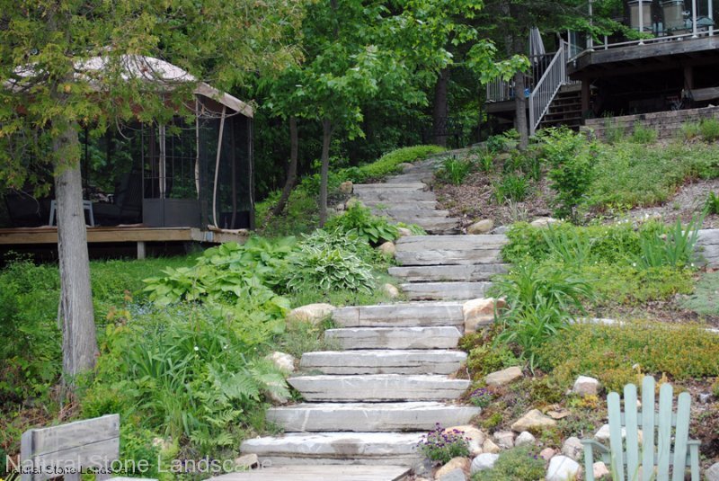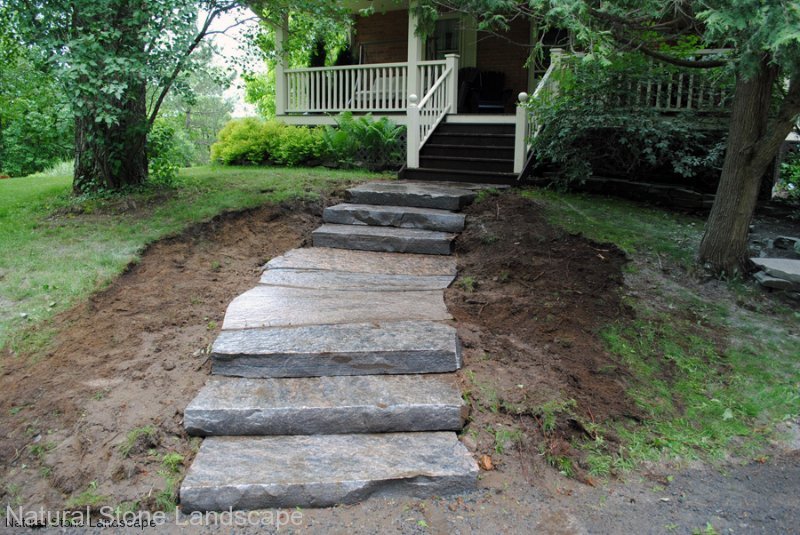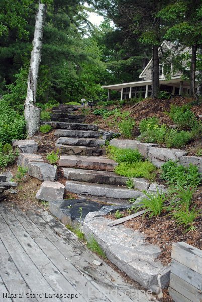 We’re very familiar with the unique landscape of the Muskoka, Parry Sound, and Haliburton areas. Cliffs, steep inclines, and challenging terrain are not a problem for us – we can cut into the bedrock on your property to set your granite stairs.