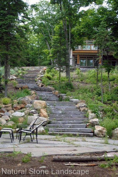 We’re very familiar with the unique landscape of the Muskoka, Parry Sound, and Haliburton areas. Cliffs, steep inclines, and challenging terrain are not a problem for us – we can cut into the bedrock on your property to set your granite stairs.